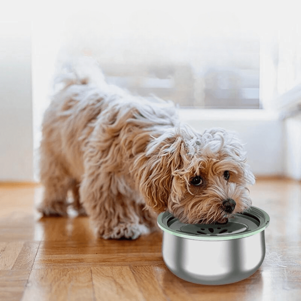 This bowl features a floating inner plate that releases water as your pet licks it. This prevents splashing, reduces the risk of drowning for puppies, and keeps your pet's fur dry.