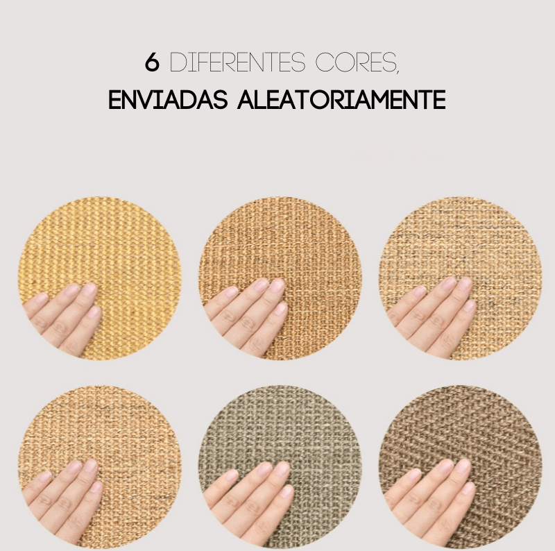 O tapete vem em 6 cores neutras aleatórias que combinam com qualquer ambiente. Além de evitar arranhões, ele também reduz pelos nos móveis e ainda é fácil de limpar. É um acessório essencial para o bem-estar do seu pet!